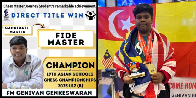 கோலாலம்பூர், 3 நவ. – மலேசியாவை பெருமைப்பட வைத்த இளம் சதுரங்க வீரர் ஜெனிவன் ஜென்கேஸ்வரன், 19வது ஆசிய பள்ளிகள் சதுரங்க சாம்பியன்ஷிப் 2025 போட்டியில் வெற்றி