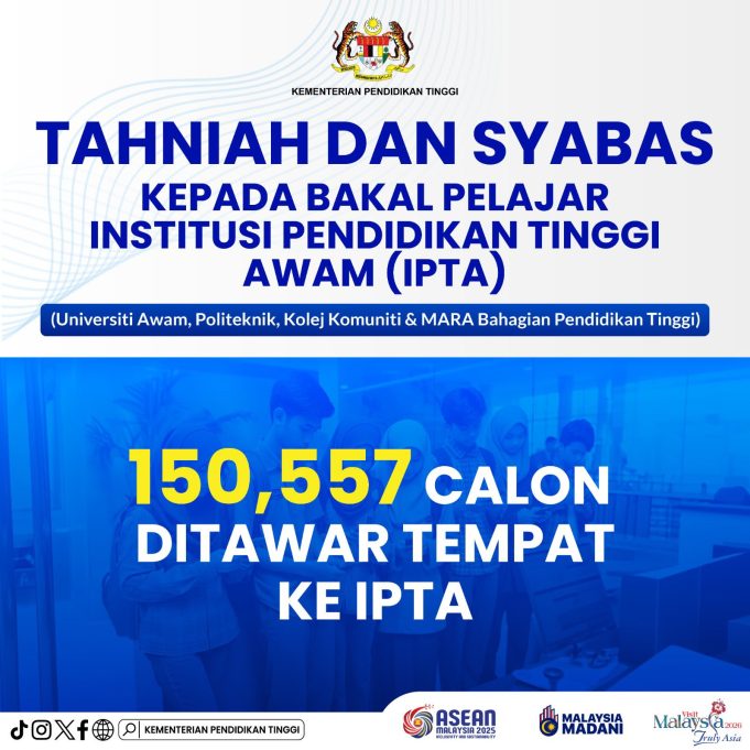 புத்ராஜெயா, ஜூன் 17: 2023ஆம் ஆண்டில் எஸ்.பி.எம். தேர்வு எழுதிய மாணவர்களில் 150,557 பேர், மலேசிய அரசாங்கத்தின் உயர் கல்வி நிறுவனங்களில் படிப்பதற்கான வாய்ப்பைப் பெற்றுள்ளனர்.