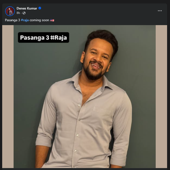 மலேசியர்களின் மனதை கவர்ந்த “பசங்க” தொடர், தனது மூன்றாவது சீசனுடன் திரும்ப வர இருப்பது அதிகாரப்பூர்வமாக உறுதி செய்யப்பட்டுள்ளது. நடிகர் டென்ஸ் குமார் தனது பேஸ்புக் மற்றும் இன்ஸ்டாகிராம் சமூகத் தளத்தில் “Pasanga 3 #Raja coming soon” என அறிவித்ததைத் தொடர்ந்து, ரசிகர்கள் மத்தியில் பெரும் எதிர்பார்ப்பு நிலவுகிறது.