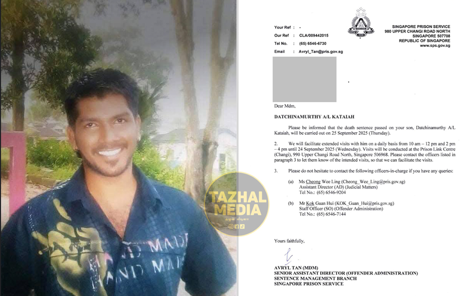 இந்த தகவலை சிங்கப்பூரின் பிரபல மனித உரிமை வழக்கறிஞர் திரு. ரவி தனது அதிகாரப்பூர்வ பேஸ்புக் பதிவில் உறுதிப்படுத்தியுள்ளார். அவர் குறிப்பிட்டதாவது: