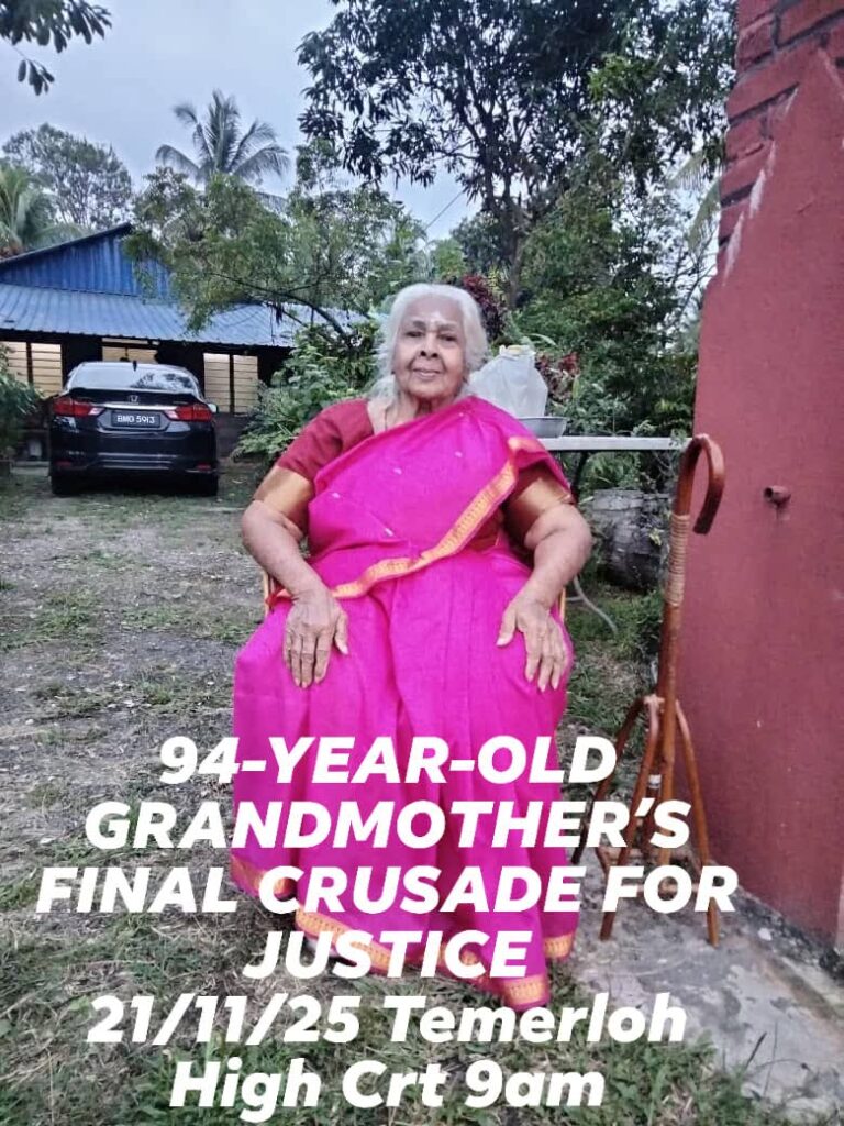 பகாங், 3 நவ. – கடந்த அரை நூற்றாண்டுக்கும் மேலாக தன் குடும்பத்தின் மரபு நிலத்தை மீட்டெடுக்க 94 வயது மதிக்கத்தக்க சாந்திராமதி அதைக்கண் என்கிற பாட்டி நீதிக்காக போராடி வருகிறார். இது செல்வத்திற்கான போராட்டம் அல்ல – மரியாதைக்கானது.