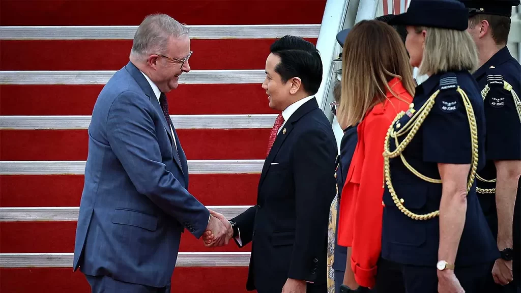 Subang, 15 April 2026 – Australia பிரதமர் Anthony Albanese, மலேசியாவிற்கு மூன்று நாள் அதிகாரப்பூர்வ பயணத்திற்காக இன்று வந்தடைந்தார். அவர் பயணித்த khas pesawat, Pangkalan Tentera Udara Diraja Malaysia (TUDM) Subang-ல் மாலை 5.15 மணியளவில் தரையிறங்கியது. அவரை Menteri Sumber Asli dan Kelestarian Alam Datuk Seri Arthur Joseph Kurup வரவேற்றார்.